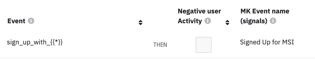 The event sign_up_with_{{*}} will match the events sign_up_with_email, sign_up_with_okta, sign_up_with_google, etc and map them all into a single "Signed Up for MSI" event.
